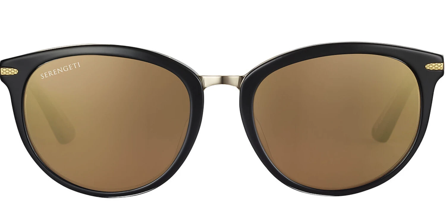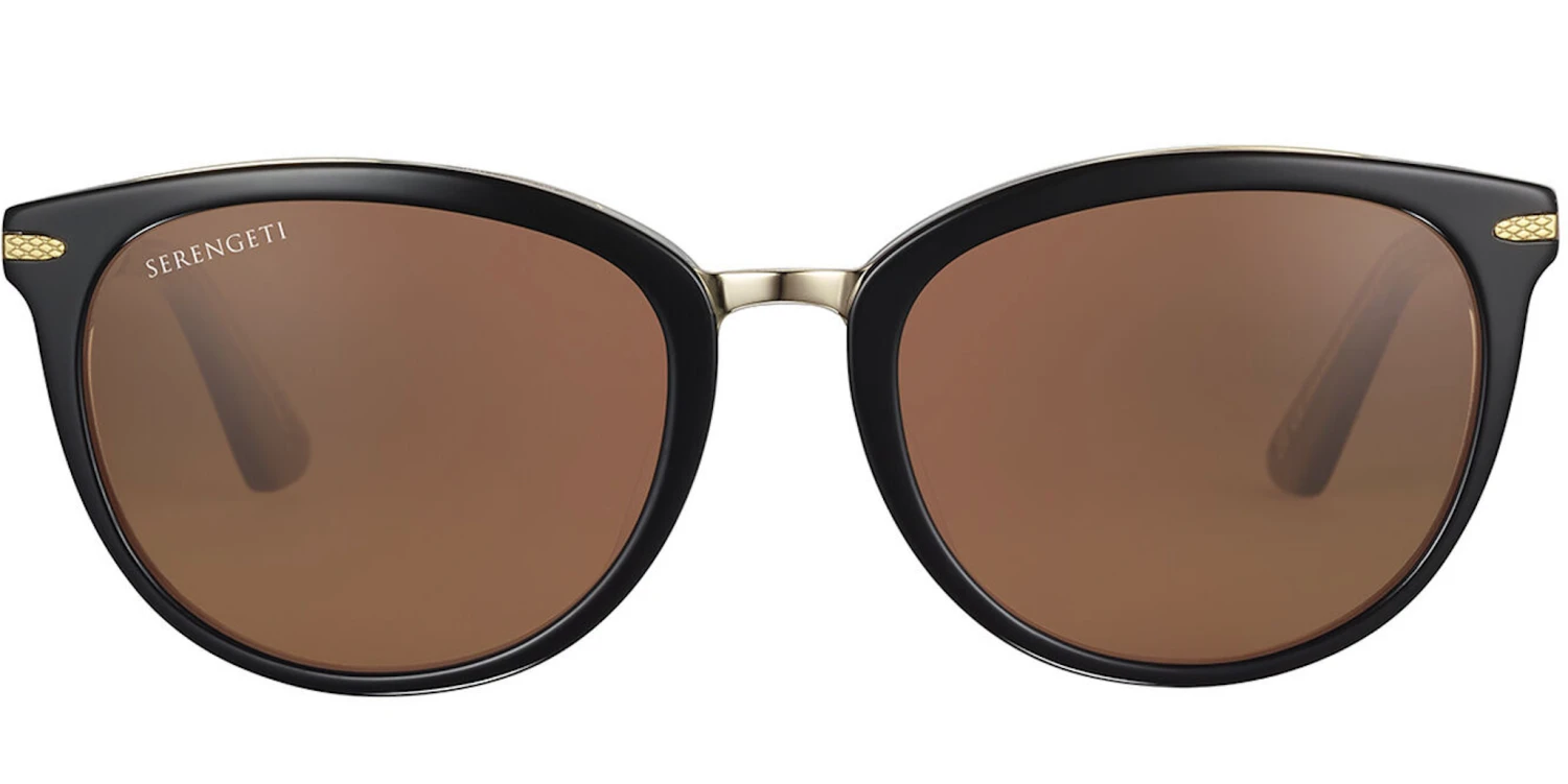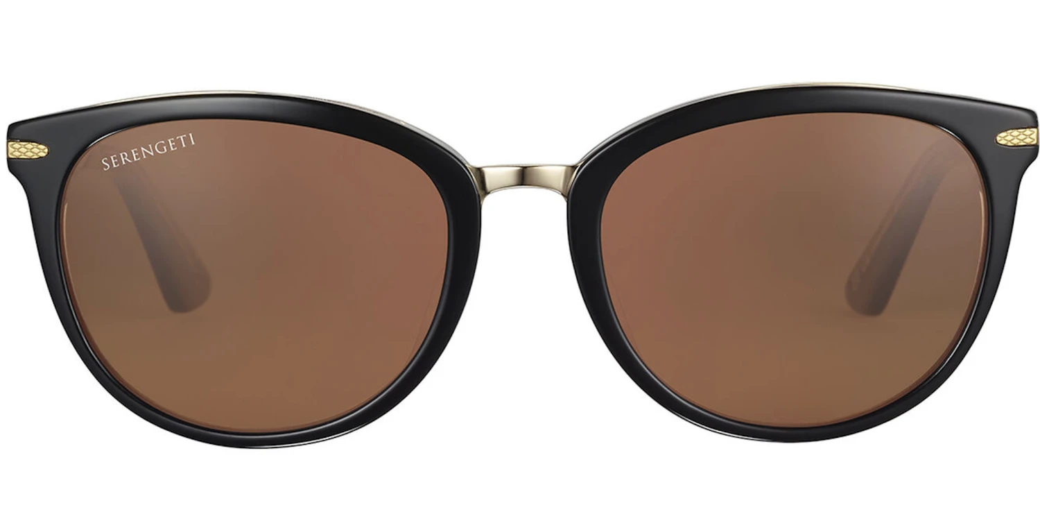 Jodie, the innovative cat-eye shape. Innovation and Serengeti go hand in hand, and Jodie is another perfect example of this. The “sandwich” construction with the metal shadowing at the top, surrounded by eco-friendly acetate adds exquisite detail and a touch of modernity to this classic, glamourous frame. The metal temples and the Serengeti mineral lenses complete this butterfly design.